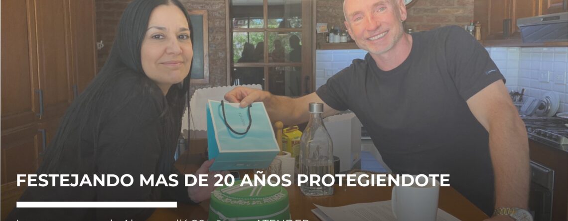 Hoy, en este aniversario, quiero aprovechar para recordarte lo orgulloso que me siento de trabajar con vos y agradecerte en nombre de la familia de ATENDER por tu dedicación y compromiso durante estas dos décadas.